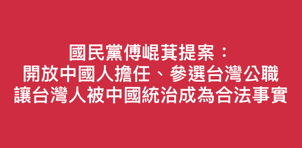 - 這不是單純是幫中共開後門了,而是要讓台灣人被中國統治成為合法事實!