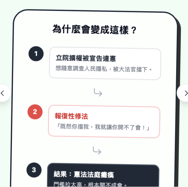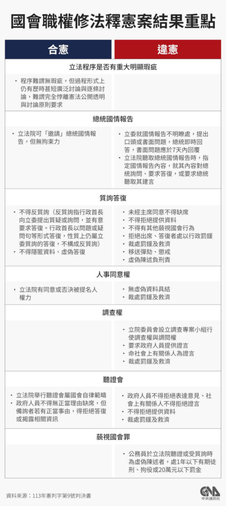 台灣的憲政體制是五權分立,原本是彼此制衡的狀態,但是去年藍白主導下強勢通過《立法院職權行使法》修法(擴權法案)。