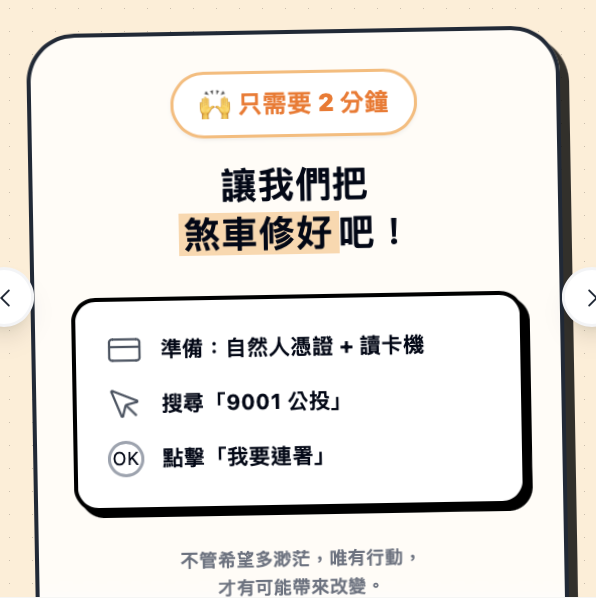 3. 兩分鐘時間 點入連署連結→ 插卡→ 輸入身分證&PIN碼→ 點擊「我要連署」 就完成了。